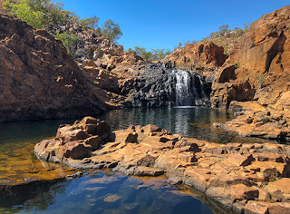 The first section of our tour is actually along part of a series of 13-pools created along the length of the gorge. Dam walls in the underlying riverbed are normally under several metres of water during the wet season but as the dry season takes over the river level drops leaving pools with some low level waterfalls for what flow remains. It is for this reason that the National Park Service are confident they can keep the pools free of saltwater crocodiles – once the pools are isolated the crocodiles can no longer move freely and are more easily trapped.
