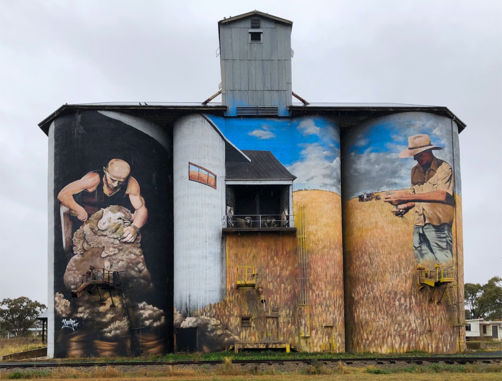 During our Big Lap of Australia in 2019 we stopped at many of Western Australia’s Silo Art locations as we headed south and again after crossing the Nullarbor into South Australia. A family emergency overseas meant we had to skip the many silos of Victoria but now, heading back from Tasmania to our home in Queensland has given us the opportunity to visit many of Victoria’s silos, two in New South Wales and one in Queensland.