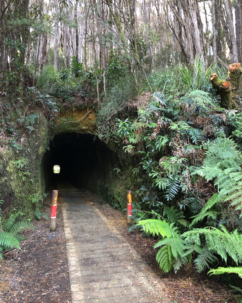 The Tunnel is located right beside the parking area and has a well constructed timber pathway. The only illumination comes from the daylight entering either end of the tunnel but at night you may see the faint blue-white light of glowworms dangling sticky threads from the roof of the tunnel trying to attract and catch passing insects.