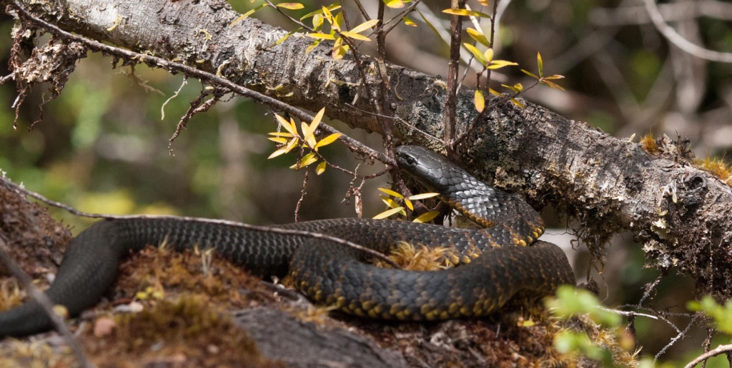 Unfortunately there were no snakes this time as we circled around the boardwalk. Similar to the wooded walks around Cradle Mountain, masses of moss and lichen smothered the ground with brightly coloured fungi growing from rotting branches.