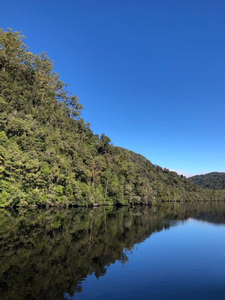 Creeping along the river you cannot help but be awestruck by the extent of trees clinging to the hills and cliffs with barely room for anything else to grow. From reeds along the riverbank, trees that have fallen into the river and upward through dense stands of leatherwood, sassafras, myrtle and the infamous Huon pine trees. It’s a true wilderness, untouched and impenetrable.